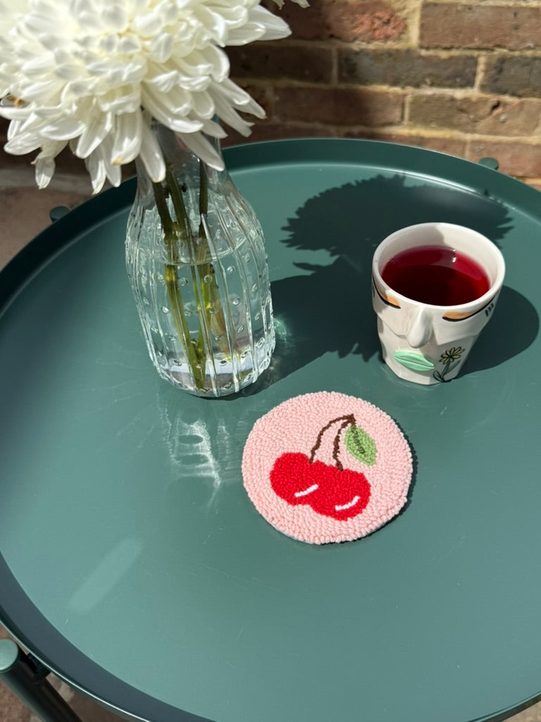 Cherry Punch Needle Coaster – Handmade, Sweet & Playful Design