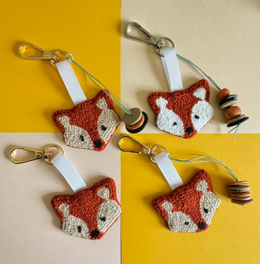 Fox Punch Needle Keychain – Whimsical, Textured & Full of Woodland Charm