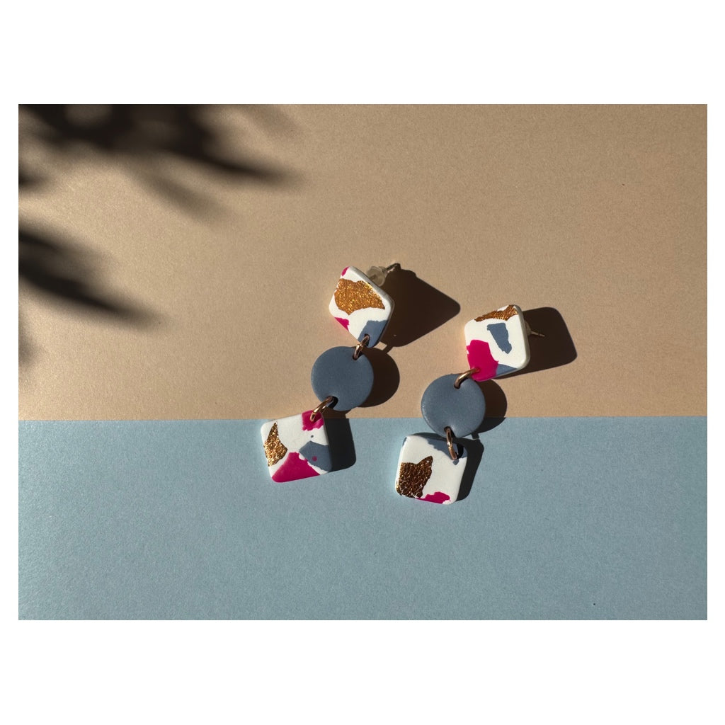 Blush Bloom Polymer Clay Earrings – White & Pink with Gold-Toned Details